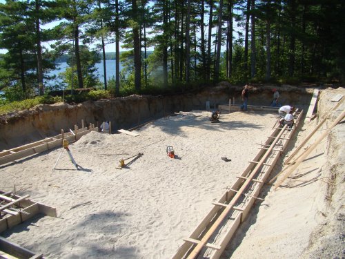 Nate compacting the sand in the hole in the ground destined to become the basement.